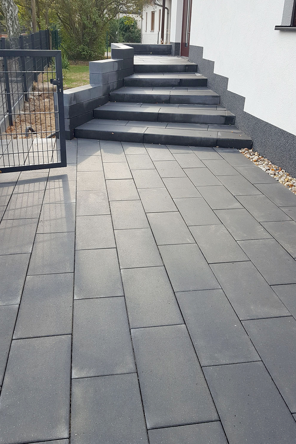 Ein ansprechend gestalteter Eingangsbereich oder eine hochwertig gepflasterte Einfahrt kann das Erscheinungsbild Ihres gesamten Grundstücks positiv verändern. Ob im Neubau oder bei der Modernisierung: Wir setzen Ihre Vorstellungen detailgetreu um und entwickeln gemeinsam mit Ihnen eine Lösung, die zu Ihrer Immobilie passt – funktional, ästhetisch und dauerhaft.